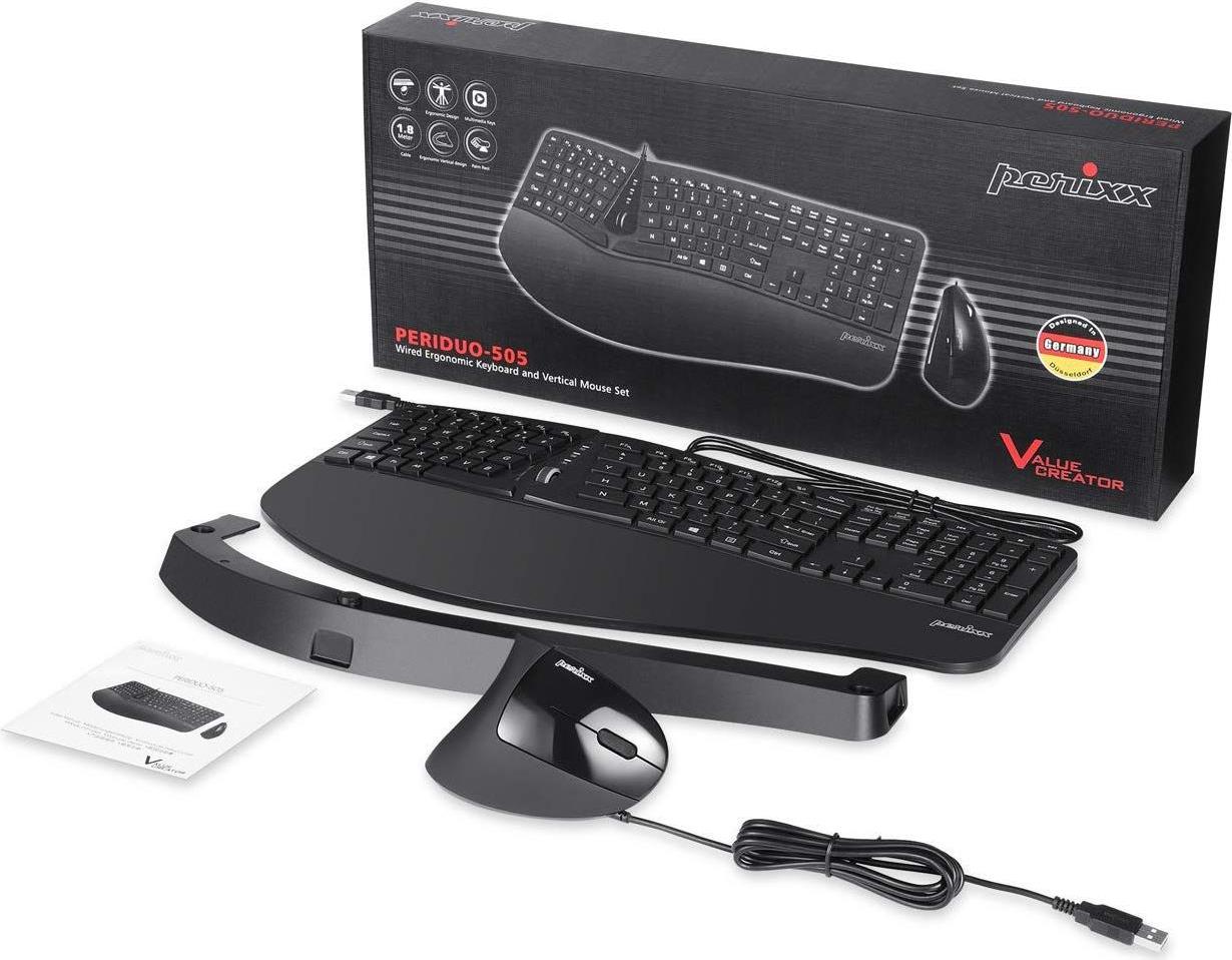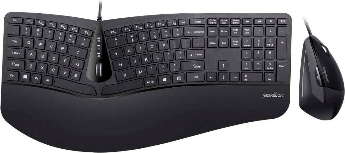 Perixx PERIDUO-505B, DE, Tastatur- und Maus Set, USB-Kabel, ergonomisch, schwarz (PERIDUO-505B)
