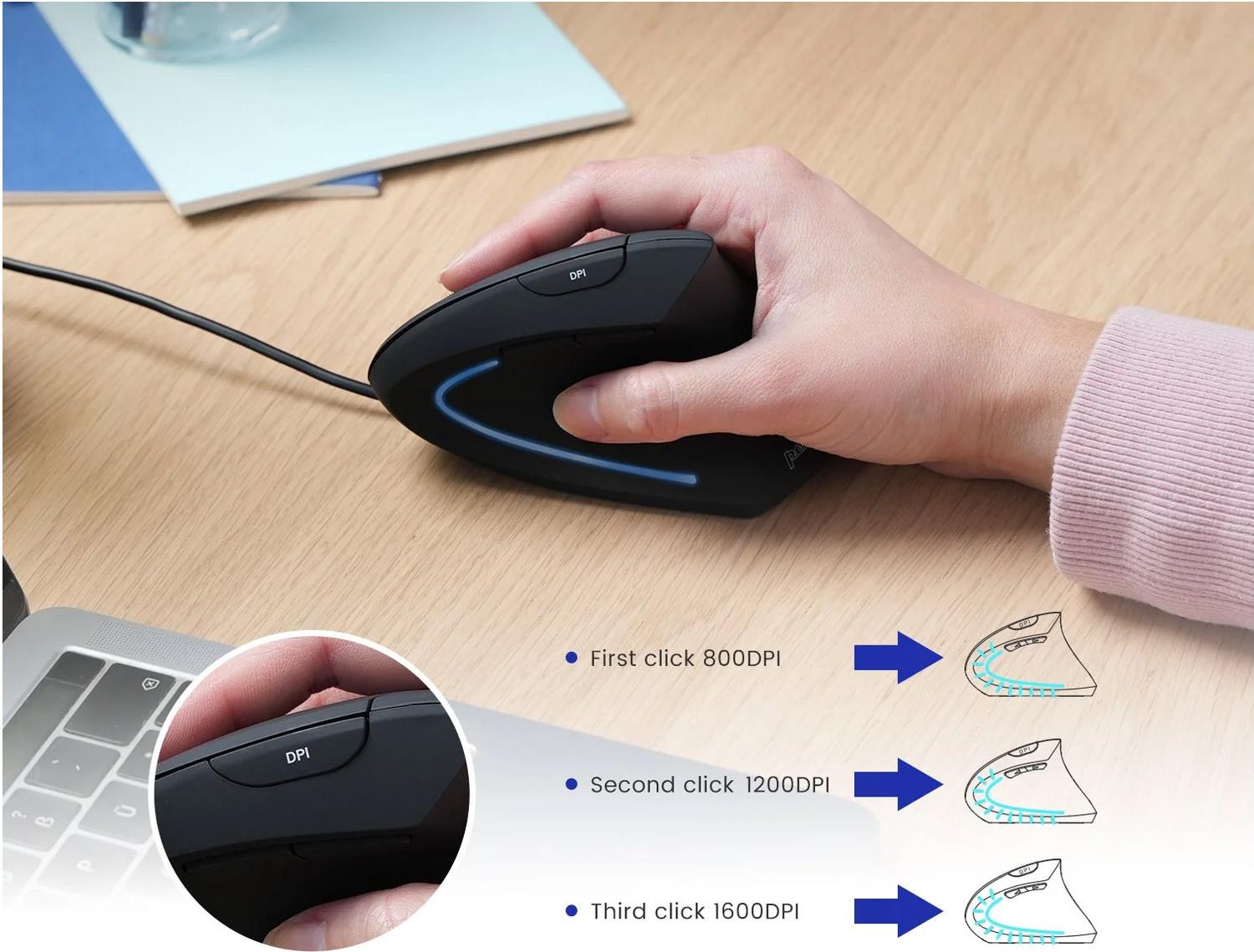 • Perixx PERIMICE-513 C Vertikale Ergonomie-Maus USB-C schwarz Rechtshänder (PERIMICE-513 C)