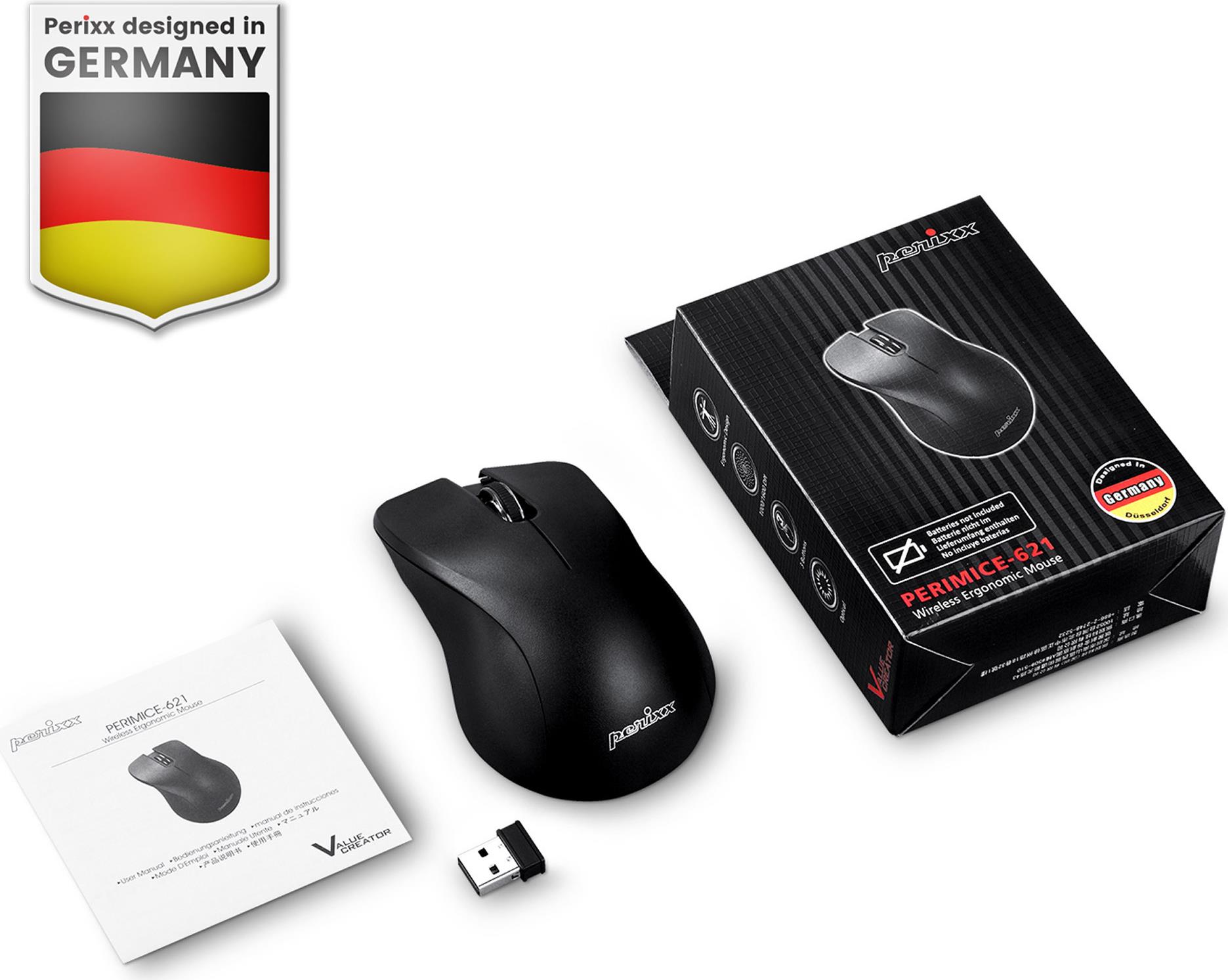 • Perixx PERIMICE-621 B Kabellose Maus mit geräuschlosen Klicks und Ergo (PERIMICE-621 B)