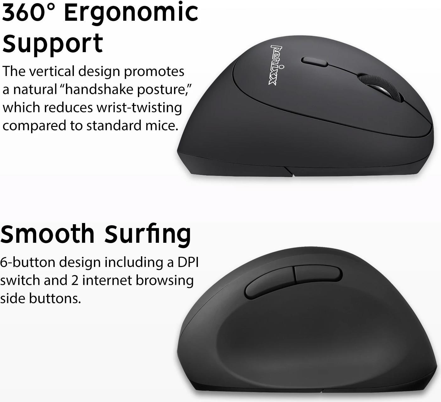 Perixx PERIMICE-719L, Kleine ergonomische Maus für Linkshänder, schnurlos, schwarz (PERIMICE-719L)