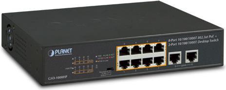 Planet GSD-1008HP ungemanaged Gigabit Ethernet (10/100/1000) Energie Über Ethernet (PoE) Unterstützung 1U Schwarz Netzwerk-Switch (GSD-1008HP)