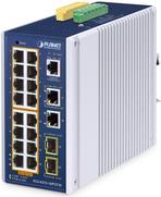 PLANET IP30 Industrial L2/L4 16-Port Managed L2/L4 Gigabit Ethernet (10/100/1000) Power over Ethernet (PoE) Aluminium - Blau (IGS-4215-16P2T2S)