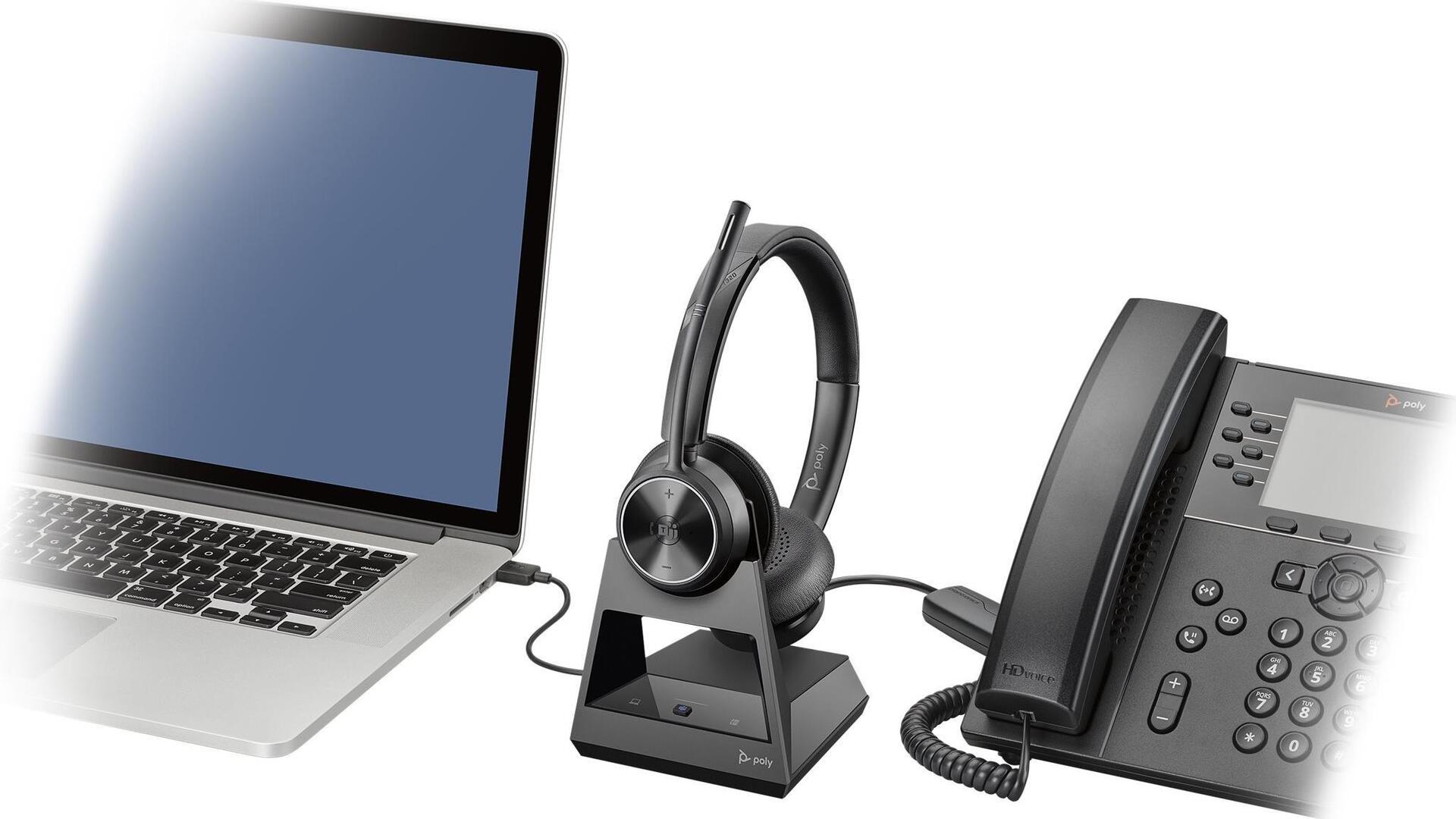 HP Poly POLY Savi 7320-M Office Stereo DECT 1880-1900 MHz Headset - Kopfhörer Kabellos Kopfband - Anrufe/Musik - Bluetooth - Schwarz(215201-05)