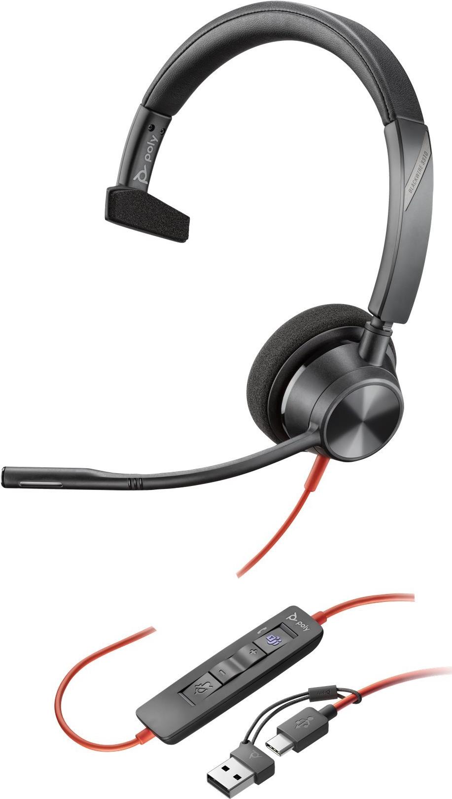 HP Inc. Poly Blackwire 3310 - Blackwire 3300 series - Headset - On-Ear - kabelgebunden - USB-A - Schwarz - Zertifiziert für Microsoft Teams, UC-zertifiziert (8X216AA)