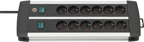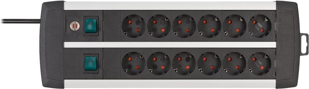 brennenstuhl Premium-Alu-Line Technics - Steckdosenleiste - Ausgangsanschlüsse: 12 - 3,0m Schnur - Schwarz, Silber (1391000912)