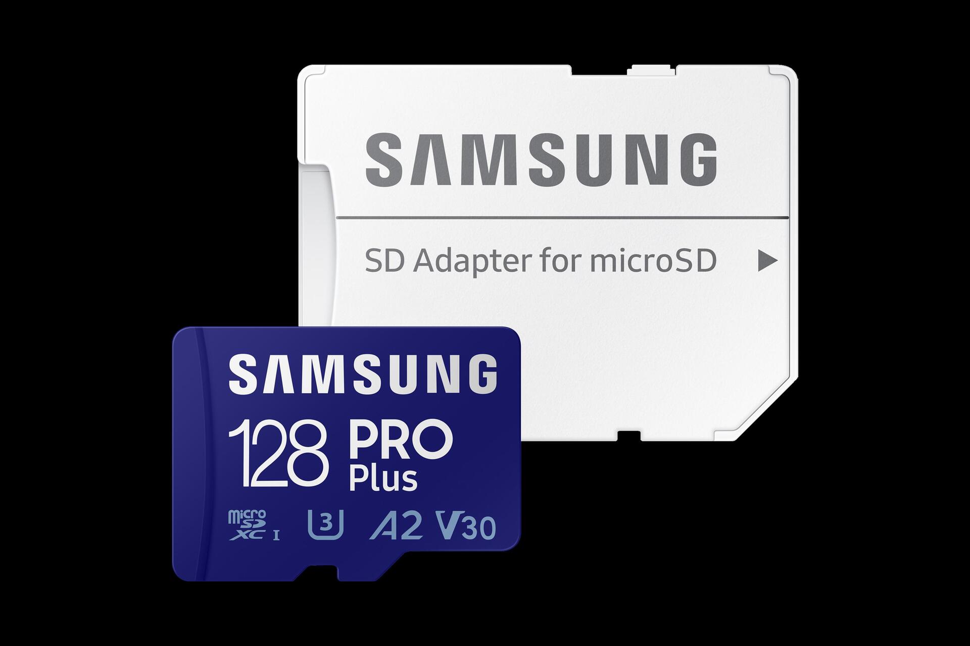 Samsung PRO Plus MB-MD128KB - Flash-Speicherkarte (microSDXC-an-SD-Adapter inbegriffen) - 128GB - A2 / Video Class V30 / UHS-I U3 / Class10 - microSDXC UHS-I - Blau (MB-MD128KB/WW)