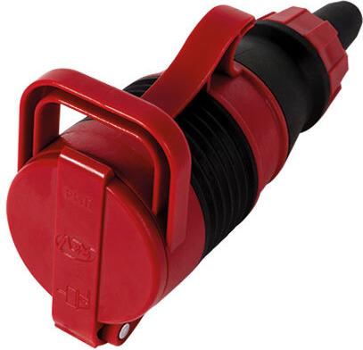 Profi Schutzkontakt-Kupplung mit selbstschließendem Klappdeckel, spritzwassergeschützt (IP44), Polycarbonat-Gummi-Gehäuse, rot-schwarz (0019221000)