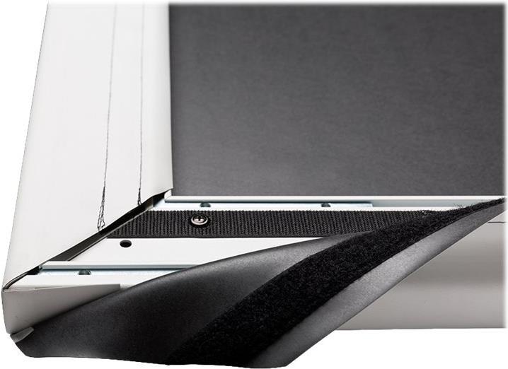 Die FullVision ist eine komplett randlose und flache Projektionswand mit festem Rahmen, bei der die gesamte Fläche für die Projektion verwendet werden kann. Die FullVision ist mit HD Progressive-Projektionstüchern erhältlich, der neuesten Technologie bei Projektionstüchern, die für 4K- und Ultra HD entwickelt wurden, um die Technologie Ihres Projektors maximal zu nutzen. Das Projektionstuch ist um den Aluminiumrahmen gewickelt und auf der Rückseite befestigt.