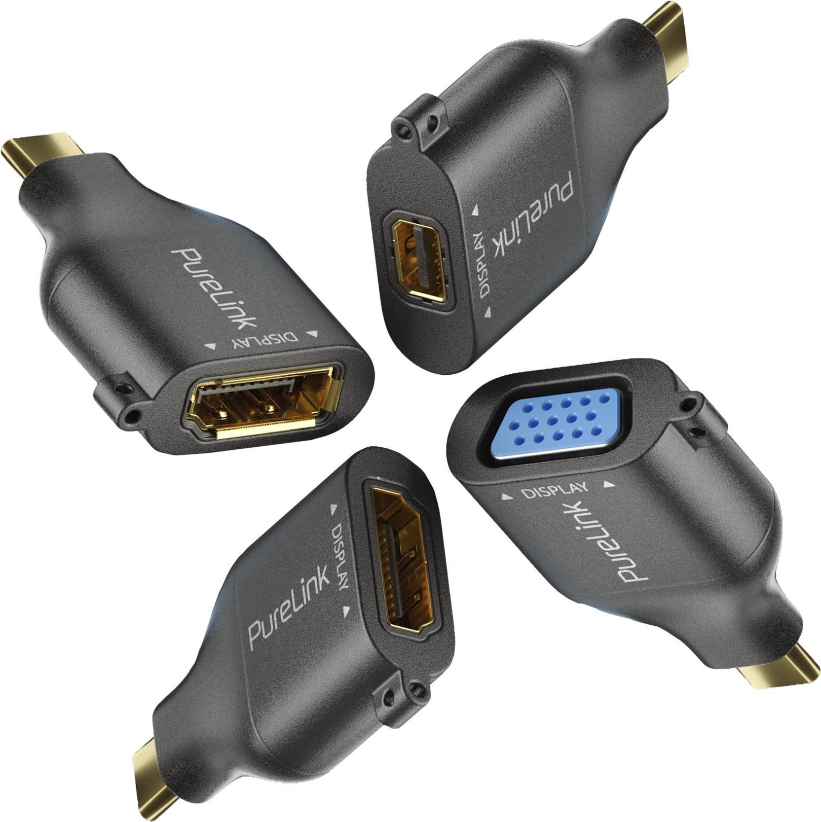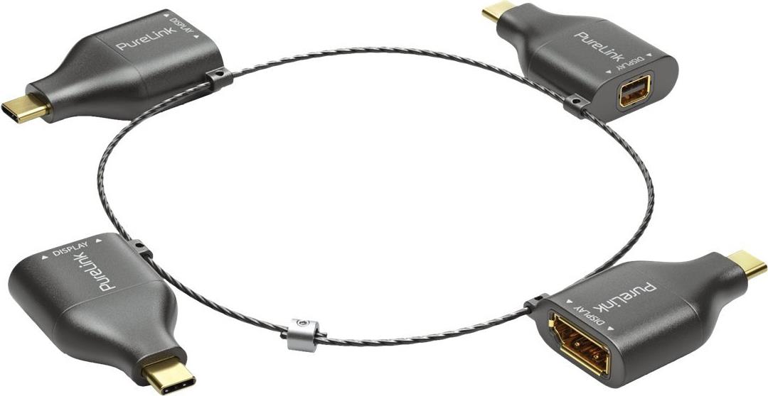 PureLink Adapter Ring Klein - 4x USB-C - USB-C > VGA/HDMI/miniDP/DP, schwarz PureLink Adapter Ring Klein - 4x USB-C - USB-C > VGA 1080p, USB-C > HDMI 4K30hz, USB-C > miniDP 4K60Hz, USB-C > DP 4K60Hz, gold plated, schwarz (IQ-AR300)