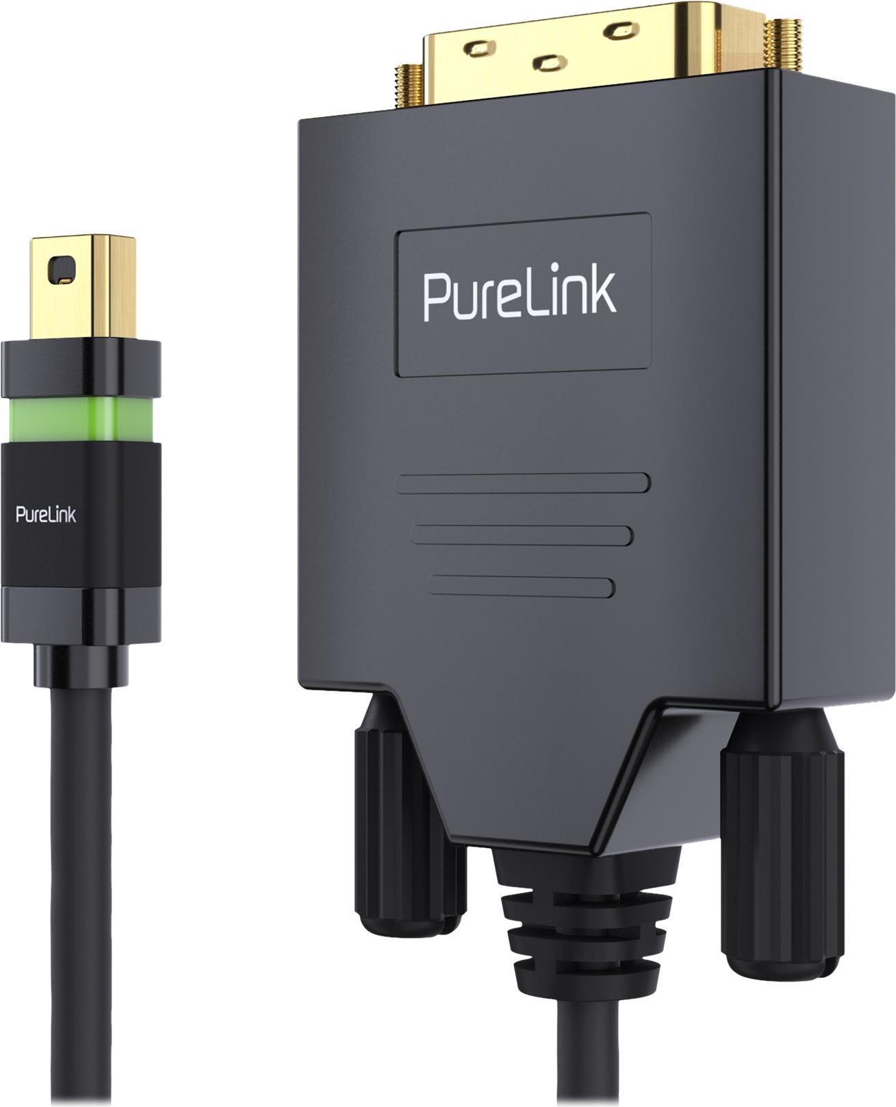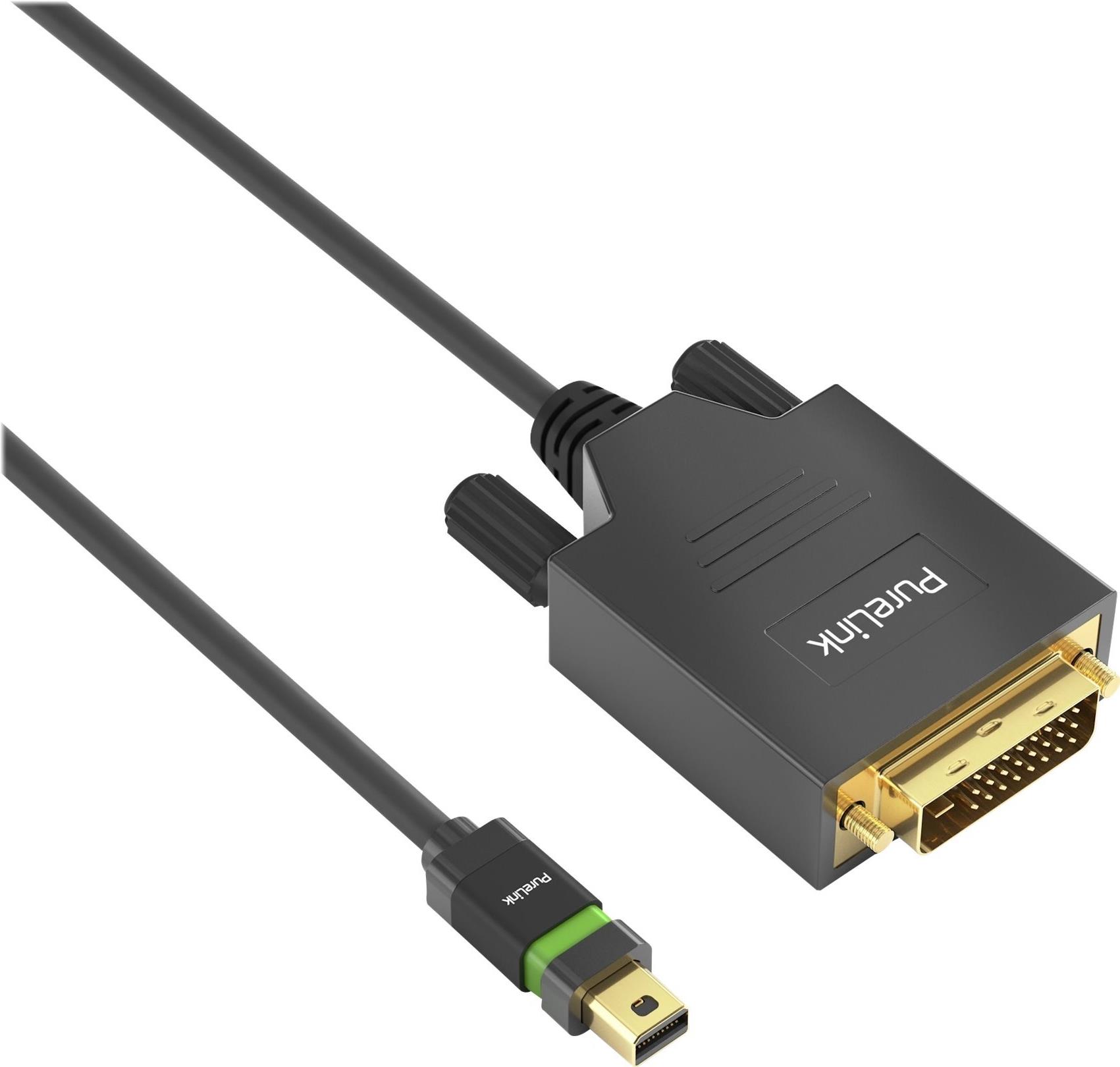 PureLink - MiniDP/DVI Kabel - Ultimate Serie - 1,50m - schwarz PureLink® - Ultimate Serie. MiniDP Kabel mit 24 kt. vergoldeten Präzisions-Steckkontakten und ULS™ (Ultra Lock System). DP1.2 Version (DVI max 2K). Mini DisplayPort Stecker auf DVI Stecker (24+1). Hochreines OFC Kupfer. Dreifach geschirmt. 100% getestet für professionelle AV Anwendungen. Länge: 1,50m. Farbe: schwarz. (ULS2100-015)