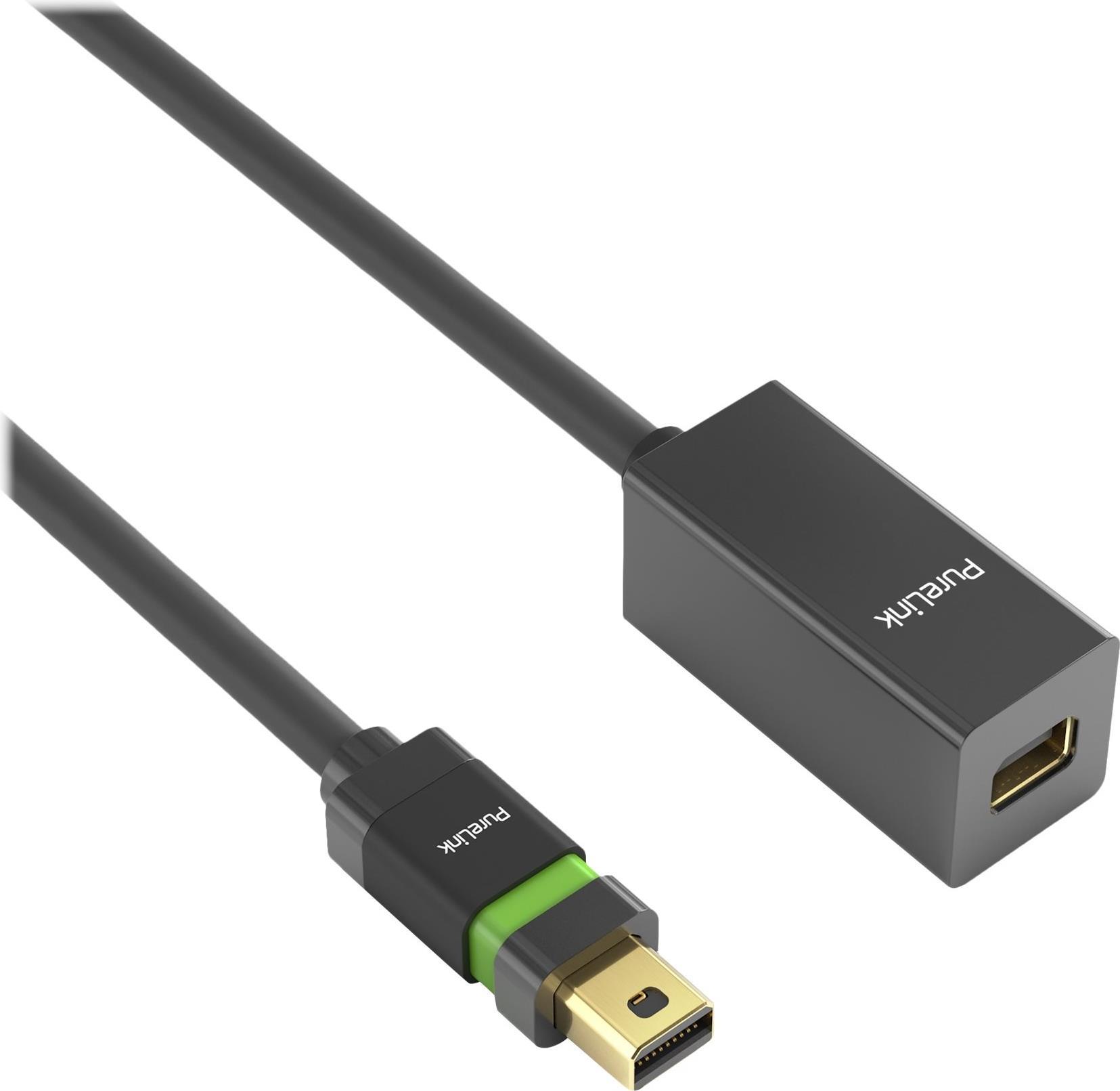 PureLink - MiniDP Verlängerung - Ultimate Serie - 1,00m - schwarz PureLink® - Ultimate Serie. MiniDP Verlängerung mit 24 kt. vergoldeten Präzisions-Steckkontakten und ULS™ (Ultra Lock System). DP1.2 Version (für 4K UltraHD). Mini DisplayPort Stecker auf Mini DisplayPort Buchse. Hochreines OFC Kupfer. Dreifach geschirmt. 100% getestet für professionelle AV Anwendungen. Länge: 1,00m. Farbe: schwarz. (ULS2300-010)