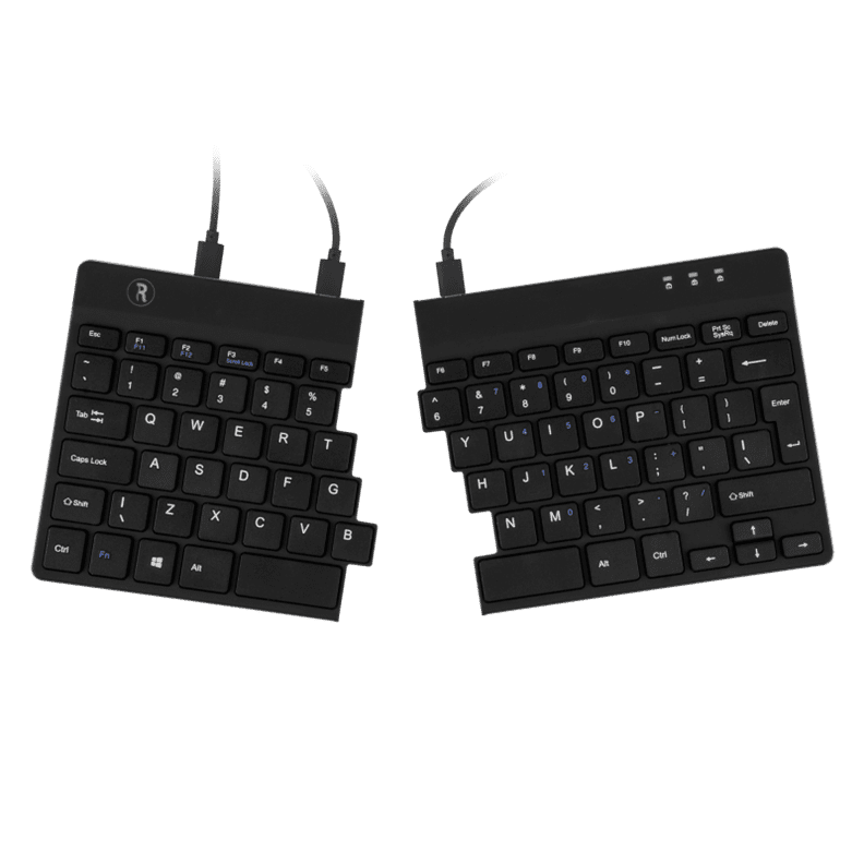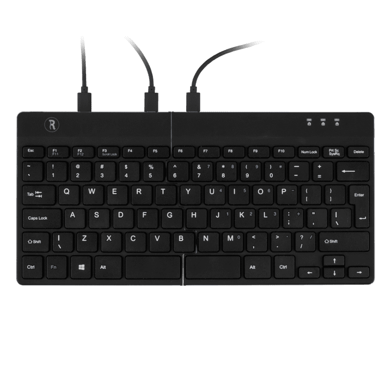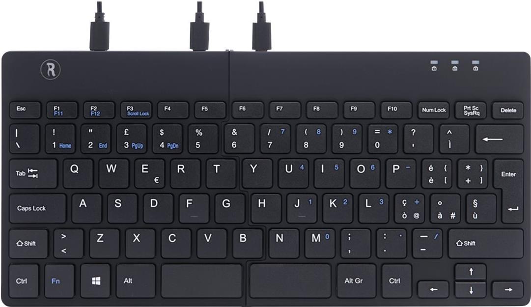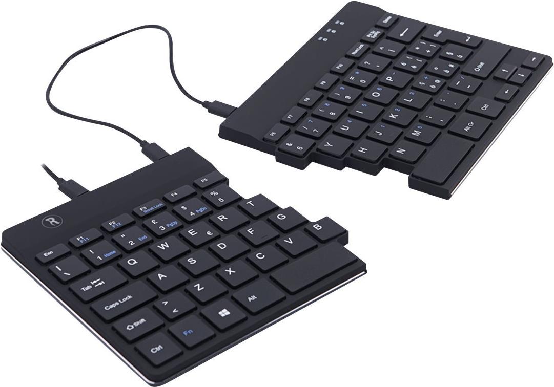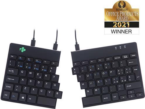 Die R-Go Split Break Tastatur ist eine ergonomische geteilte Tastatur mit integrierter Pausensoftware. Diese Tastatur erinnern Sie daran, regelmäßig Pausen einzulegen. Kurze Pausen fördern den Blutkreislauf, beugen Überbelastungsbeschwerden vor und halten Sie bei der Arbeit fit. Die Tastatur besteht aus zwei separaten Teilen, die Sie nach Belieben aufstellen können. Diese Spaltung verhindert ein Knicken der Handgelenke beim Tippen. Denn Tippen mit geraden Handgelenken verringert die Muskelspannung und verhindert das Einklemmen von Sehnen und Blutgefäßen. Ein eingebauter Magnet ermöglicht es Ihnen, die beiden separaten Teile der Tastatur in einer Bewegung in eine kompakte Tastatur zurück zu verwandeln. Die kompakte Größe sorgt dafür, dass die Maus immer in Reichweite ist. Durch den leichten Tastenanschlag ist die Muskelspannung beim Tippen minimal. Die Tastatur ist flach, sodass Ihre Hände und Handgelenke beim Tippen flach und entspannt bleiben. Die LED-Farbsignale in der Tastatur zeigen an, wie gesund Sie arbeiten und wann es Zeit für eine Pause ist. Während Sie tippen, wechselt die LED die Farbe, wie eine Ampel. Grün bedeutet, dass Sie auf gesunde Weise arbeiten, Orange, dass es Zeit für eine Pause ist, und Rot, dass Sie zu lange gearbeitet haben. Mittels dieser subtilen Farbsignale erhalten Sie auf einfache und positive Weise ein Feedback zu Ihrem Pausenverhalten. Dieses Produkt funktioniert in Kombination mit der R-Go Break Software, die mit dem Benelux Office Product Award 2021 gekürt wurde. Laden Sie den kostenlosen Break LED-Steuerung hier herunter.Produkttext[/head]Diese Tastatur verfügt über alle ergonomischen Merkmale, um gesund tippen zu können.Das kompakte Design sorgt dafür, dass die Hände beim gleichzeitigen Gebrauch von Tastatur und Maus stets innerhalb der Schulterbreite bleiben. Die beiden Teile können in jede gewünschte Position gebracht werden. Dieses einzigartige Design vermeidet eine Reichbewegung des Arms und sorgt für eine natürliche, entspannte Position der Schulter, des Ellenbogens sowie des Handgelenks. Dank des leichten Tastenanschlags herrscht beim Tippen eine minimale Muskelspannung. Das dünne Design sorgt für eine entspannte, flache Haltung der Hände und Handgelenke beim Tippen. Die Tastatur ist leicht, und da sie aus zwei Teilen besteht, passt sie einfach in jede Laptoptasche.2 in 1Größe der TastenPerfekt für Reisen[head]Hauptmerkmale