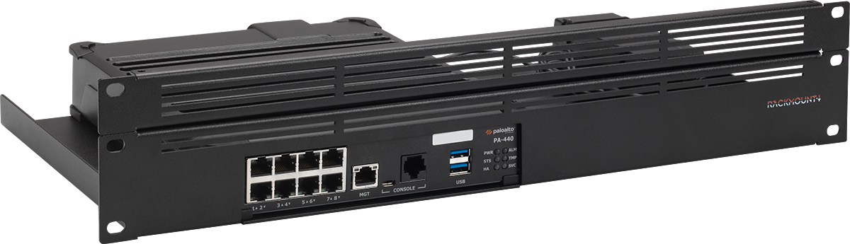Mit dem RM-PA-T7 können Sie Ihre Palo Alto Desktop Gerät auf ein 19-Inch-Gestell montieren. Das Gestell ist speziell auf die aufgelisteten Modelle zugeschnitten, um perfekte Passform zu garantieren. Die Verbindungen befinden sich an der Vorderseite, um den Zugang zu erleichtern, ebenso wie der Konsolenanschluss. Die Stromversorgung ist fixiert, um ungewollte Stromausfälle zu vermeiden.