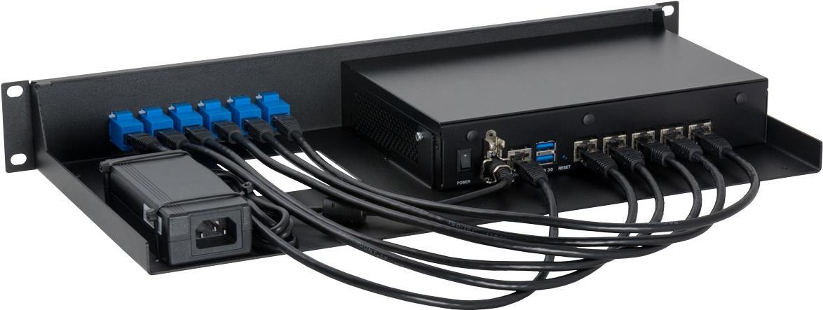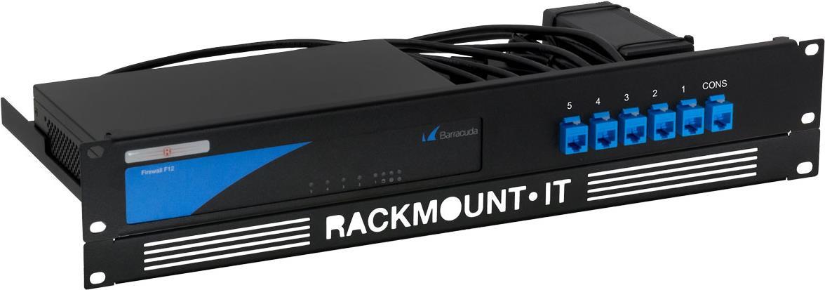 Mit dem RM-BC-T2 können Sie Ihre Barracuda Desktop Firewalls auf ein 19-Inch-Gestell montieren. Das Gestell ist speziell auf die aufgelisteten Modelle zugeschnitten, um perfekte Passform zu garantieren. Die Verbindungen ebenso wie der Konsolenanschluss befinden sich an der Vorderseite, um den Zugang zu erleichtern. Die Stromversorgung ist fixiert, um ungewollte Stromausfälle zu vermeiden.