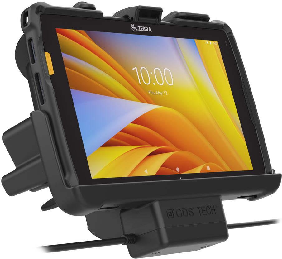 RAM Mounts EZ-Roll'r Halteschale für Zebra ET40/45 (8?) Diese RAM Mounts EZ-Roll?r Halteschale ist für Zebra ET4x 20,30cm (8") Serie mit Zebra Rugged Boot geeignet.Die Halteschale wird durch einen 5.5mm DC-Anschluss mit Strom versorgt und lädt das Gerät in dem Dock auf.Peripheriegeräte werden über den integrierten Dual USB-A Anschluss unterstützt.Zum Einlegen wird die Unterseite des Gerätes in die Halteschale eingelegt und bis zum Einrasten in die Halteschale gedrückt.Durch die Aussparungen an den Tasten und Anschlüssen können diese weiterhin ohne Einschränkungen genutzt werden.Die Halteschale ermöglicht auch durch die Aussparung der Innenseite, dass die Scanfunktion des Tablets weitergenutzt werden kann.Tablet Zubehör wie z.B. PowerPack Akku können hier zusätzlich untergebracht werden. Die Rückseite der Gerätehalteschale ist für die Aufnahme einer VESA 75x75 mm oder runden Basisplatte (nicht im Lieferumfang enthalten) vorbereitet.Produktmerkmale RAM Mounts RAM-HOL-ZE20PD2U:Kompatibel mit PowerPack AkkuLeichtes Einlegen und einfache EntnahmeZusätzliche Montageplatte für die Befestigung zusätzlicher Geräte oder ZubehörNur mit Zebra Rugged Boot nutzbarAnschlussbuchse: 5.5mm DCAusgangsbuchse: 2x USB-A 2.0 (Peripheriegerät - 900mAh per Port)Übertragungsgeschwindigkeit: 12MbpsEingangs-Kabellänge: ca. 100 cmAusgangs-Kabellänge: ca. 24 cmZertifikate: RoHS, FCC, WEEE, CE & UKCAZusätzliche Hinweise: Für eine Nutzung ohne Rugged Boot benötigen Sie das Zubehör RAP-INSERT-ZE20U.Diese Halteschale ist nicht mit einer IntelliSkin kompatibel.Für die Anwendung mit einer IntelliSkin Schutzhülle nutzen Sie bitte RAM-GDS-DOCK-ZE20PD2U.Abgebildete Geräte gehören nicht zum Lieferumfang.Es wird ausschließlich die RAM-HOL-ZE20PD2U Halteschale geliefert. (RAM-HOL-ZE20PD2U)