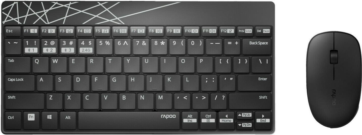 Rapoo 8000M - Tastatur-und-Maus-Set - kabellos - 2.4 GHz, Bluetooth 4.0, Bluetooth 3.0 - Schwarz