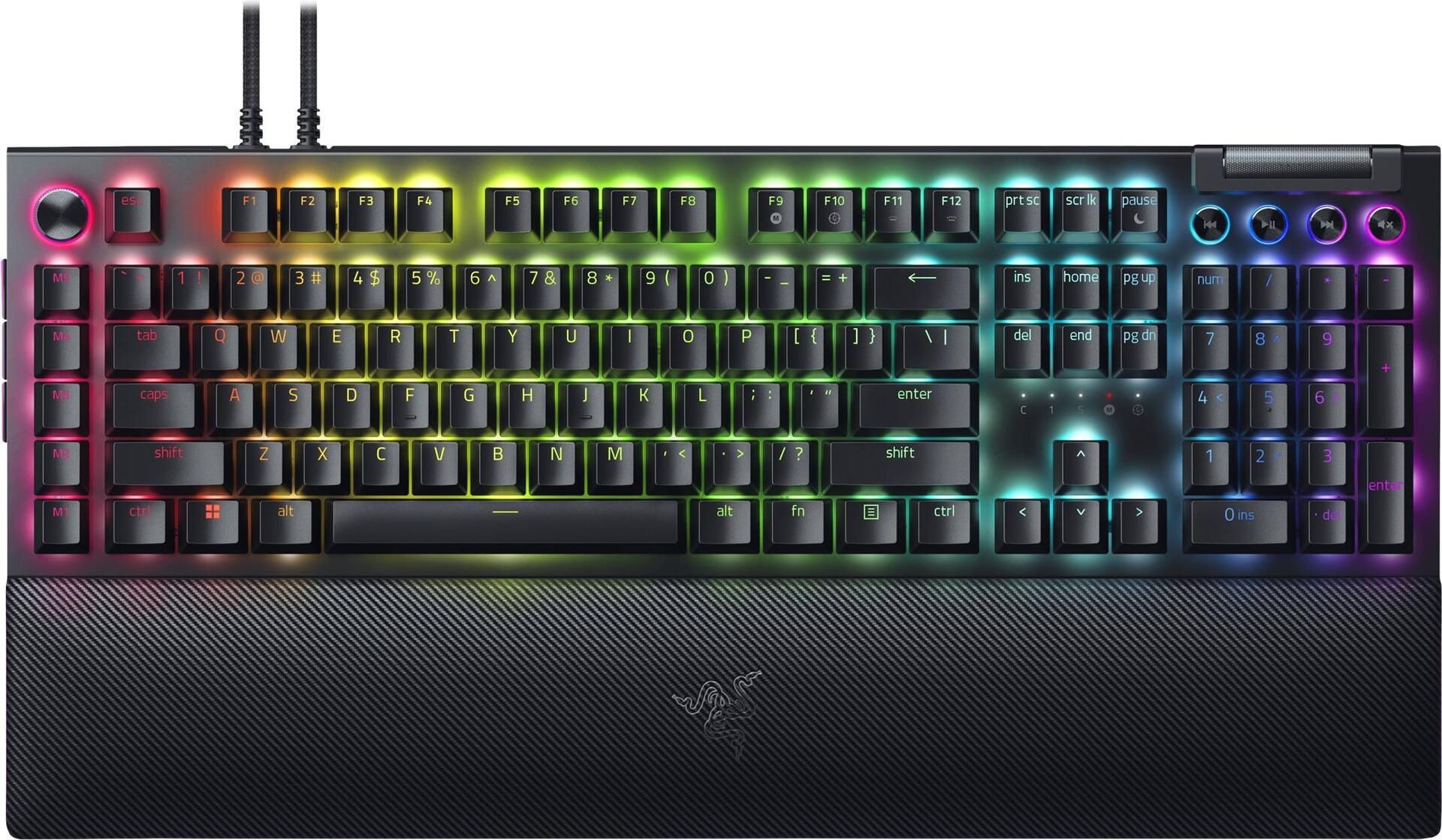 Die Razer BlackWidow ist eine mechanische Gaming-Tastatur, die entwickelt wurde, um deinem Gameplay ein ganz neues Gefühl und ungeahnte beschleunigung zu geben. Eine komplett mechanische Tasteninfrastruktur liefert unverwechselbars Feedback, ausgezeichnete Reaktionszeit und unübertroffene actions per minute mit einer verlängerten Lebensdauer von über 50 Millionen Tastenanschlägen. Mit ihren fünf zusätzlichen Makrotasten mit On-the-Fly-Aufzeichnung und optimierter Tastenmatrix behältst du die komplette Kontrolle über jeden Kampf, während du deinen Feind an die Wand spielst und Angriff auf Angriff folgen lässt.