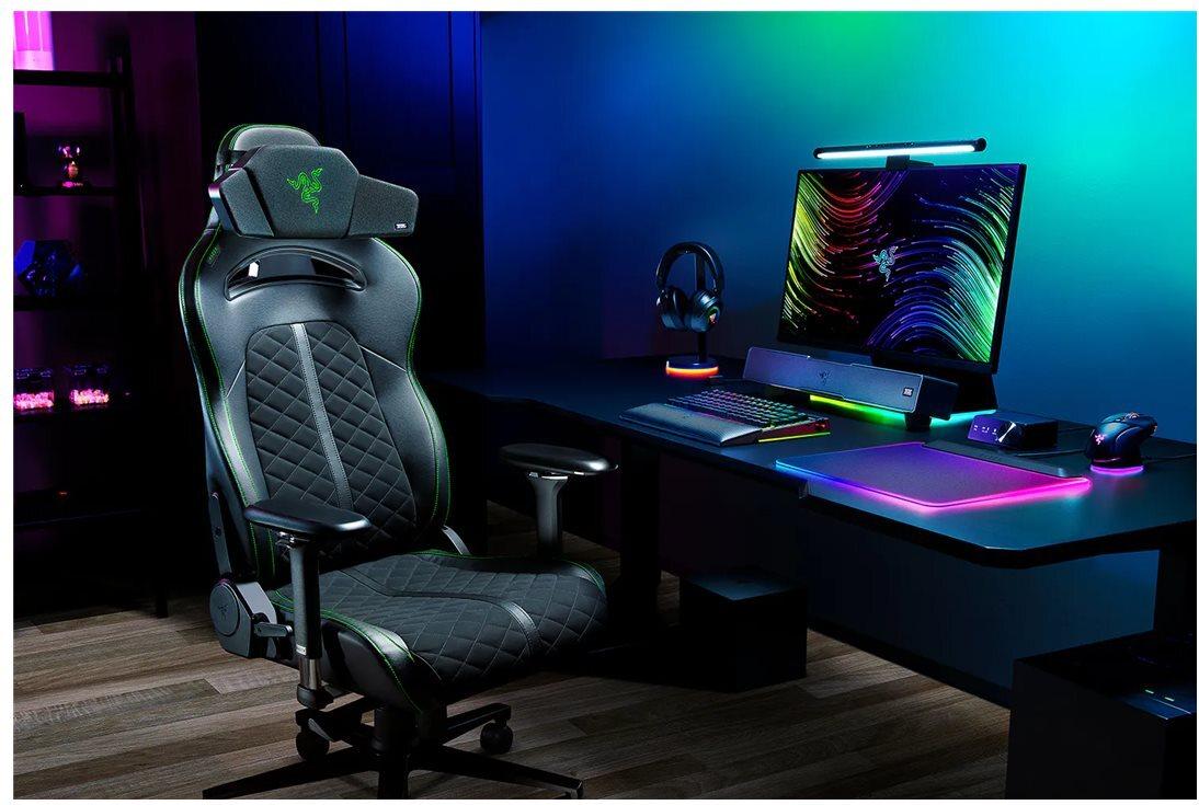 Verwandeln Sie Ihr Spielerlebnis mit dem Razer Clio Kopfstützenkissen, das für mehr Komfort und Unterstützung bei langen Gaming-Sessions entwickelt wurde. Mit integrierten Nahfeld-Dual-Lautsprechern liefert dieses Kissen einen beeindruckenden Klang während des Spielens und sorgt dafür, dass Sie jedes Detail klar und deutlich hören können. Der verstellbare Gurt ermöglicht eine individuelle Anpassung, sodass das Kissen sicher auf Ihrem Gaming-Stuhl sitzt. Dank des integrierten USB-Anschlusses bleiben Sie für alle Ihre Gaming-Anforderungen problemlos verbunden.