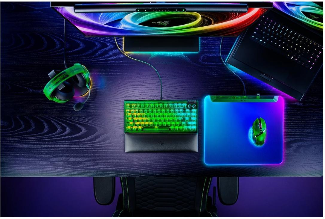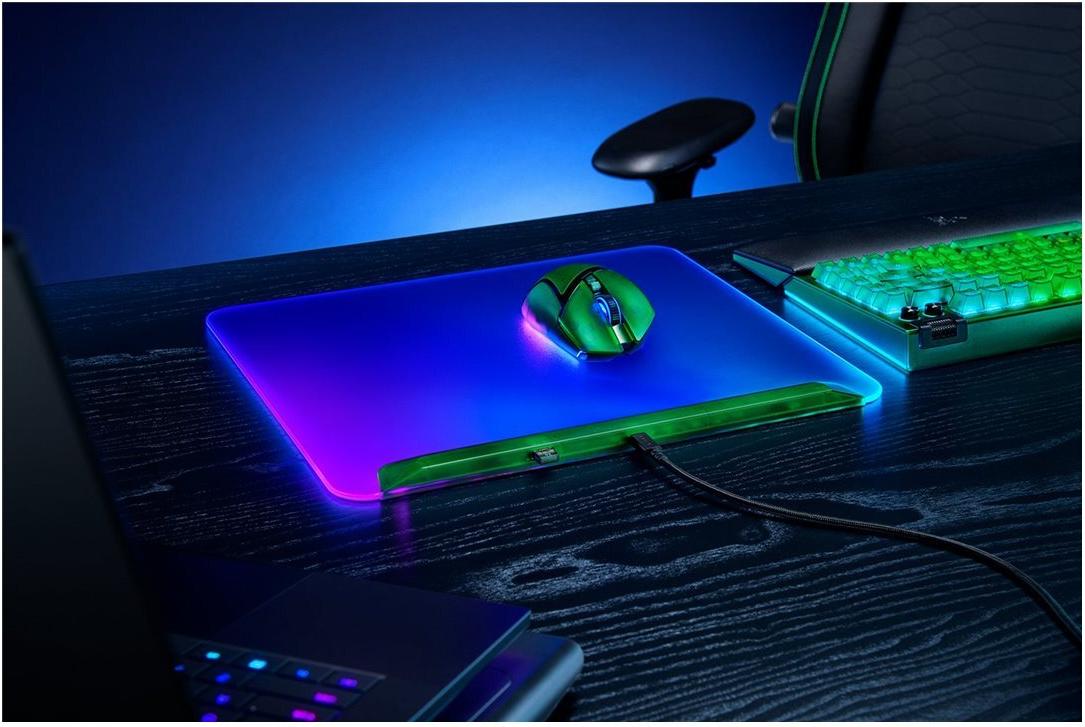 Das Razer Firefly V2 Pro Mauspad vereint Funktionalität und Ästhetik und bietet Gamern mit seinen vollständig beleuchteten RGB-Funktionen ein beeindruckendes Erlebnis. Dieses Gaming-Mauspad verfügt über eine mikrostrukturierte Oberfläche, die präzise Abtastung und Kontrolle während intensiver Gaming-Sessions gewährleistet. Das randlose Backlight-Design verbessert die Optik und trägt zu einer dynamischen Gaming-Umgebung bei. Jedes Detail ist für Gamer konzipiert, einschließlich eines USB 2.0-Pass-Through-Anschlusses für zusätzlichen Komfort. Mit 15 Zonen Chroma-Beleuchtung ist die Anpassung mühelos, sodass Benutzer Effekte erstellen können, die mit ihrer Gaming-Konfiguration synchronisiert sind. Verbessern Sie Ihre Gaming-Sessions mit dem Razer Firefly V2 Pro, einer Mischung aus Stil und Leistung.