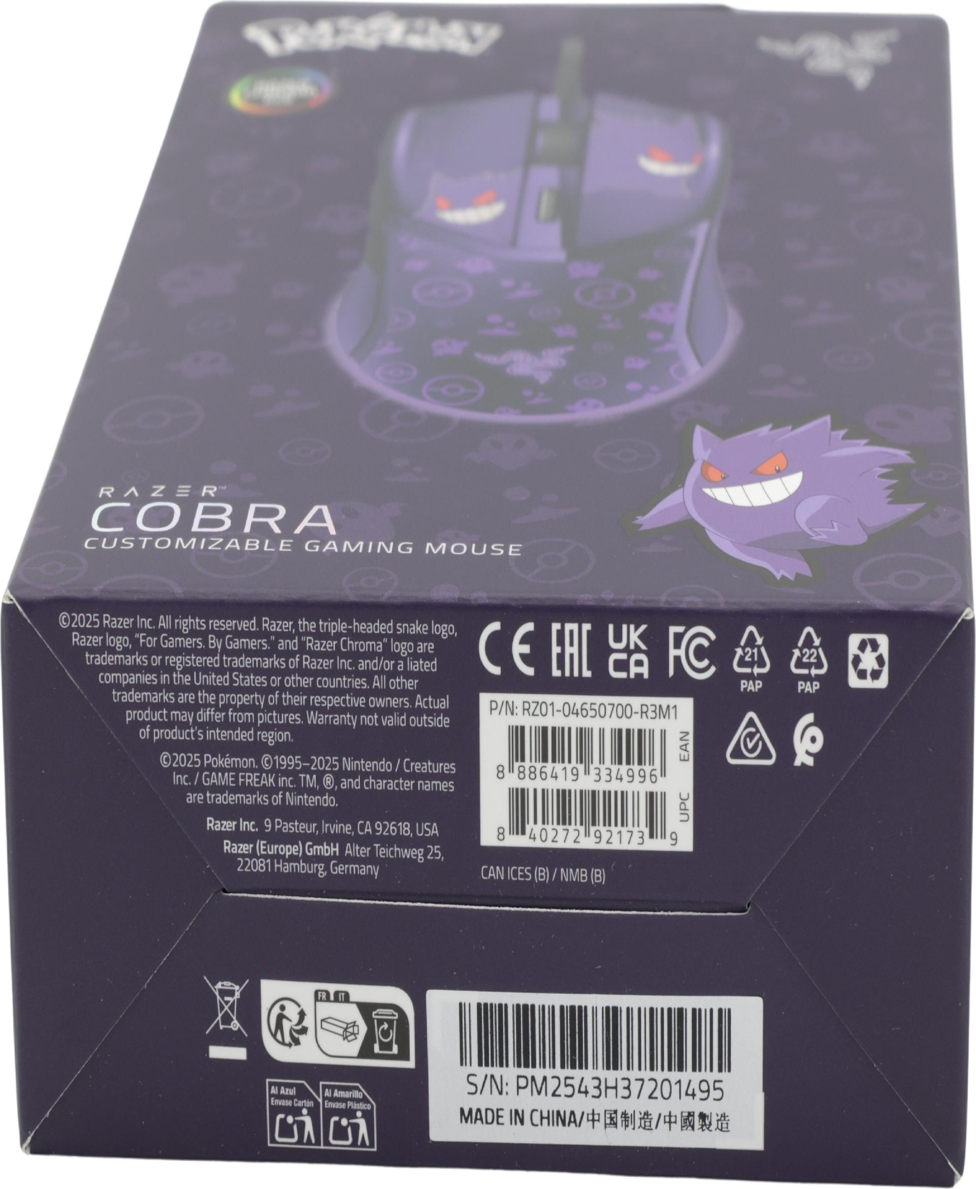 Die Razer Cobra Gengar Edition Maus wurde für Gamer entwickelt, die Präzision und Geschwindigkeit suchen. Mit einer Bewegungsauflösung von 8500 DPI und einer Tracking-Geschwindigkeit von 300 ips bietet diese Maus die Reaktionsfähigkeit, die für kompetitives Gaming erforderlich ist. Das leichte Design sorgt für Komfort bei langen Spielsitzungen, während das Razer Speedflex-Kabel den Widerstand minimiert und so eine nahtlose Bewegung über Ihre Gaming-Oberfläche ermöglicht.