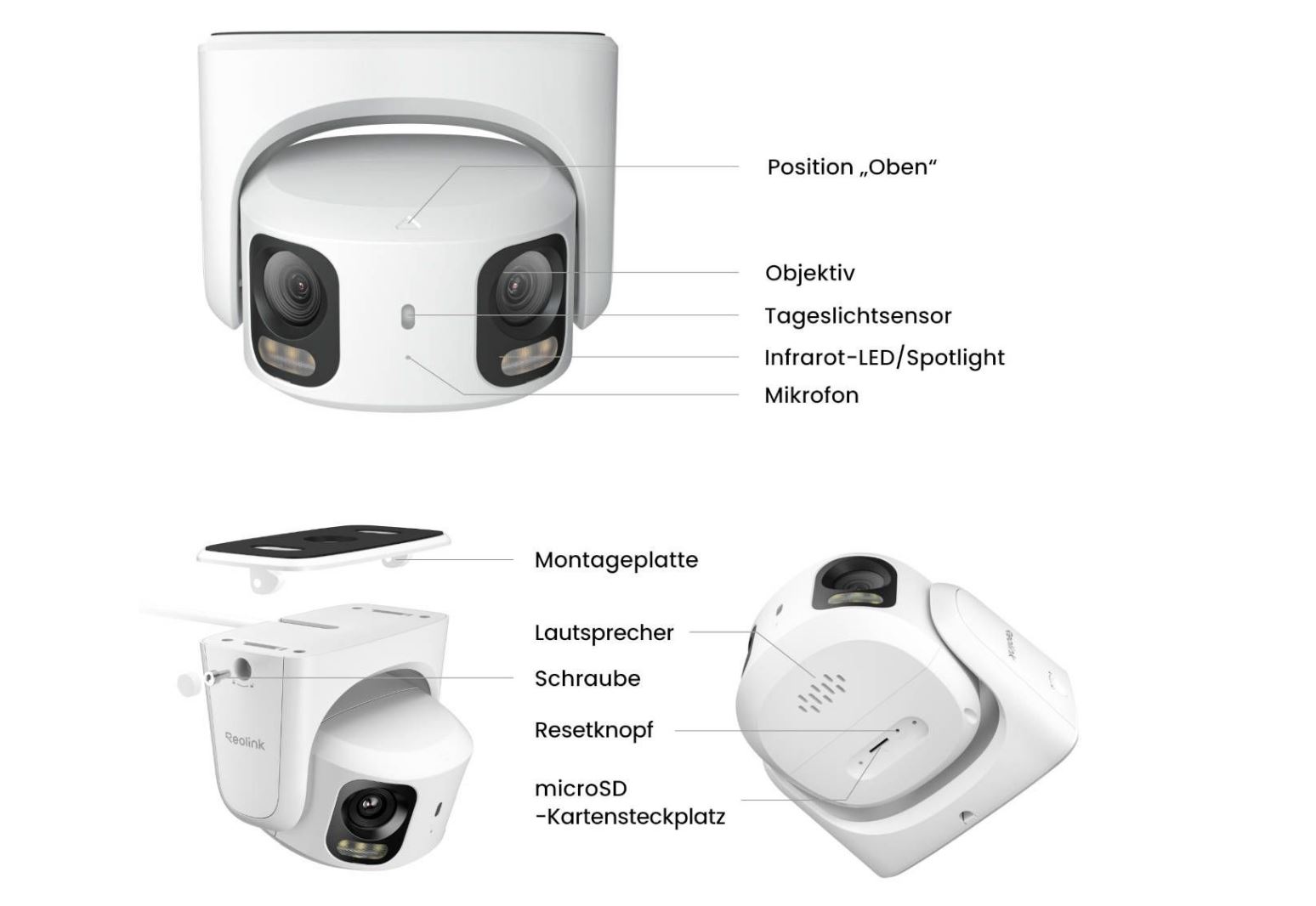 Reolink RP-PCT8MD Kamera, Netzwerkkabel (1m), Wasserdichter Verschluss für RJ45, Montagezubehör (Schrauben/Dübel), Inbusschlüssel, Lochschablone, Überwachungsaufkleber, Kurzanleitung |