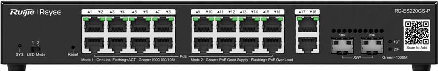 • Reyee 20-Port Gigabit Smart Cloud Managed PoE Switch 16x Gbit PoE+ 250W (RG-ES220GS-P)