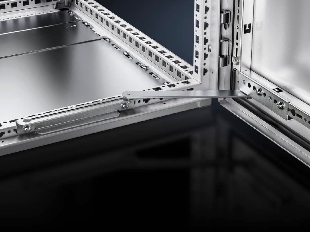 Zum Sichern der geöffneten Tür. Montierbar direkt ohne weitere mechanische Bearbeitung an Schrankrahmen und Tür. Die platzsparende Konstruktion behindert die Einbauteile in Schrank und Tür ...