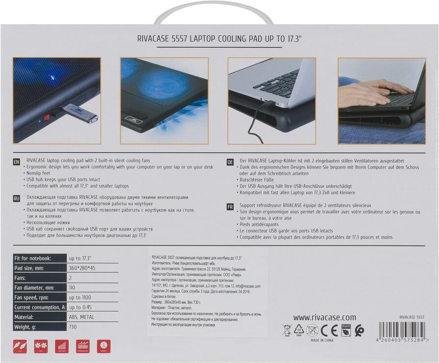 Rivacase 5557 Notebook-Kühlpad 43,9 cm (17.3" ) 1100 U/min Schwarz (5557 BLACK)