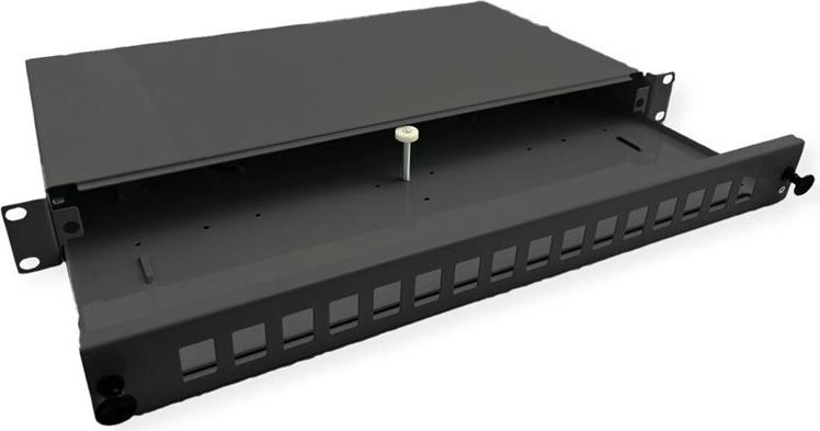 Ausziehbarer 19"-Keystone-Modulträger mit geschlossenem Gehäuse, speziell zur Aufteilung mehradriger LWL-Kabel und zur Verbindung über LWL-Keystones 16 Steckplätze für (LWL-)Keystones Für Aufnahme von Spleißkassetten vorbereitet Ausziehbar für einfachen Zugang bei der Installation oder Nacharbeit Kabeleinführung: 2x PG 13.5 inklusive Kabelverschraubungen Mitgeliefertes Zubehör: 4 Sätze M6 Schrauben & Muttern sowie 6x Kabelbinder Zum Einsatz in 19"-Verteilerschränken.