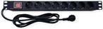 19\" Schutzkontakt-Steckdosenleiste 1HE zum Einbau in 19\" Schränke, inkl. Einbauwinkel • Anordnung der Steckdosen: 45° • Profil aus eloxiertem Aluminium • Beleuchteter Ein-/Aus-Schalter - Leitung: 2,0 m H05VV-F 3G 1,50 mm , schwarz - Max. Belastung: 16A 3600W - Farbe: schwarz - Einbaulänge: 466 mm - Abmessungen: 487 x 44,4 x 44,4 mm.