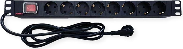 ROLINE 48,30cm (19")-Steckdosenleiste 8fach mit Schalter beleuchtet 1.8m schwarz - Steckdosenleiste - 1,8 m - Rack-Modul (19.07.1619)