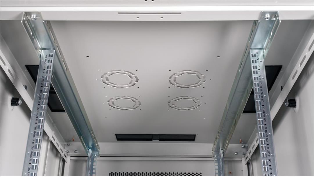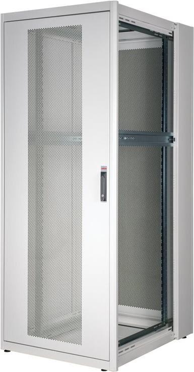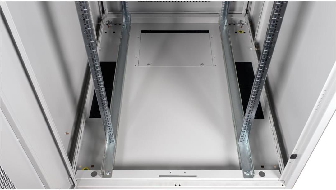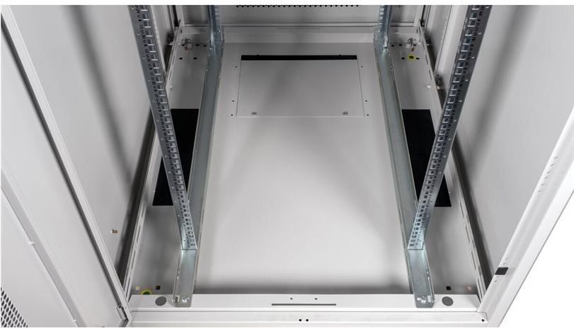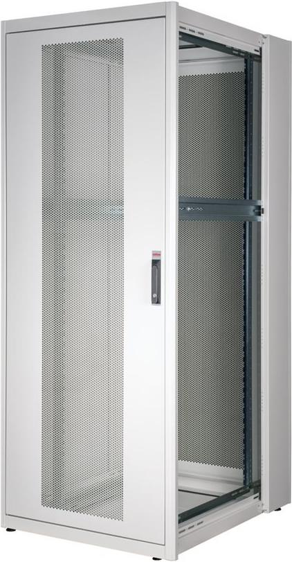 ROLINE 19 Zoll Serverschrank Basic 42 HE 800x1000 BxT perforiert grau Die Netzwerkschränke der ROLINE Basic Serie wurden entwickelt, um einen einfachen und besonders kosteneffizienten Netzwerkausbau zu ermöglichen. Durch strategisch platzierte Kabeleinlässe ist eine mühelose Installation je nach Anwendungsfall gewährleistet. Im Bodenchassis befindet sich der Kabeleinlass, der durch eine verschraubte Abdeckplatte geschützt und im hinteren mittigen Bereich positioniert ist. Bei Schränken ab 800 mm Breite werden zusätzliche Kabeleinlässe mit Kunststoffabdeckung links und rechts hinzugefügt. Diese sind auch im Dach integriert (einmal bei 600 mm Schrankbreite, dreimal bei 800 mm Schrankbreite). Für die Installation eines Lüftermoduls ist das Dachchassis ebenfalls mit einem ausgestanzten Bereich versehen. Im Inneren sind zwei Paar galvanisierte 19"-Profilschienen verbaut, die in beide Richtungen ablesbar sind und sich in der Tiefe verstellen lassen. Sie sind zudem mit zusätzlichen Tiefenstreben im Schrank verbunden. Jeder Schrank besteht aus einer robusten Stahlkonstruktion mit einer Materialstärke von bis zu 1,5 mm Stahlblech. Die Farbgebung erfolgt mittels elektrostatischer Pulverbeschichtung in den Standardfarben Grau (RAL 7035) und Schwarz (RAL 9005). Abnehmbare Seiten- und Rückwände sowie eine abschließ- und abnehmbare Fronttür verbessern die Zugänglichkeit. Ein Wechsel des Türanschlags ist möglich. Zudem sind die Schränke aufgrund ihrer zerlegbaren Konstruktion bei Bedarf vollständig demontierbar.