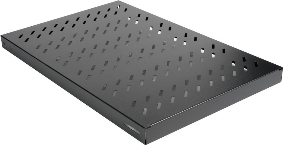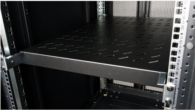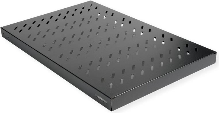 ROLINE 19 Zoll Fachboden 1 HE 700 T 50 kg schwarz Die fest installierbaren Fachböden können problemlos an den vier 19"-Profilschienen Ihres 19" Netzwerk- oder Serverschrankes angebracht werden. Sie bestehen aus stabilem, perforiertem Lochblech und haben eine Traglast von bis zu 50 kg, was sie zur idealen Ablagefläche für Komponenten macht, die nicht 19"-einbaufähig sind. Die Befestigungsschienen lassen sich bei Bedarf verstellen.