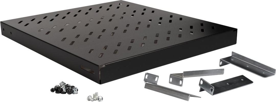 ROLINE 19 Zoll Fachboden 1 HE 500 T 50 kg schwarz Die fest installierbaren Fachböden können problemlos an den vier 19"-Profilschienen Ihres 19" Netzwerk- oder Serverschrankes angebracht werden. Sie bestehen aus stabilem, perforiertem Lochblech und haben eine Traglast von bis zu 50 kg, was sie zur idealen Ablagefläche für Komponenten macht, die nicht 19"-einbaufähig sind. Die Befestigungsschienen lassen sich bei Bedarf verstellen.
