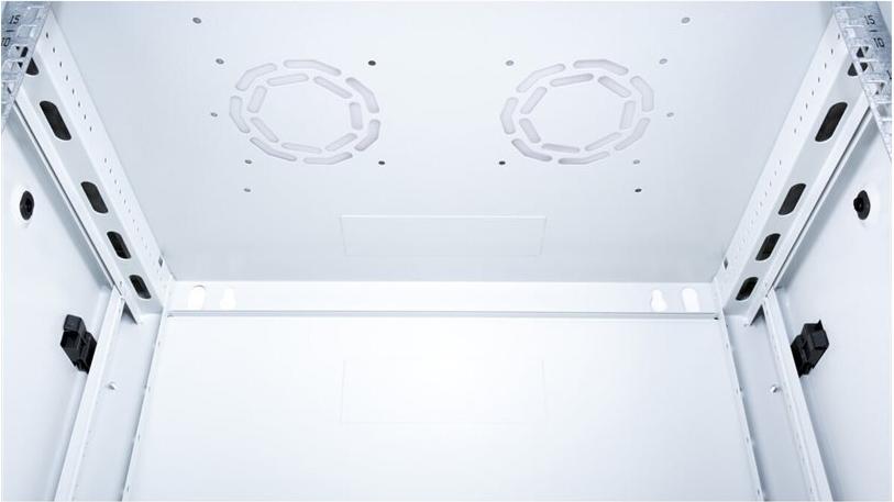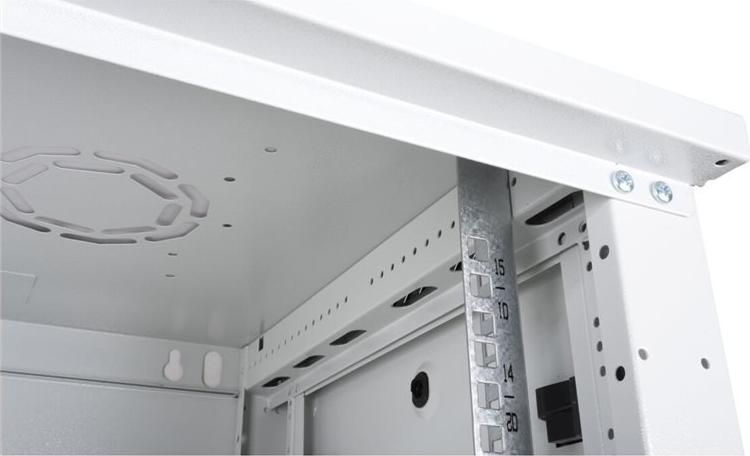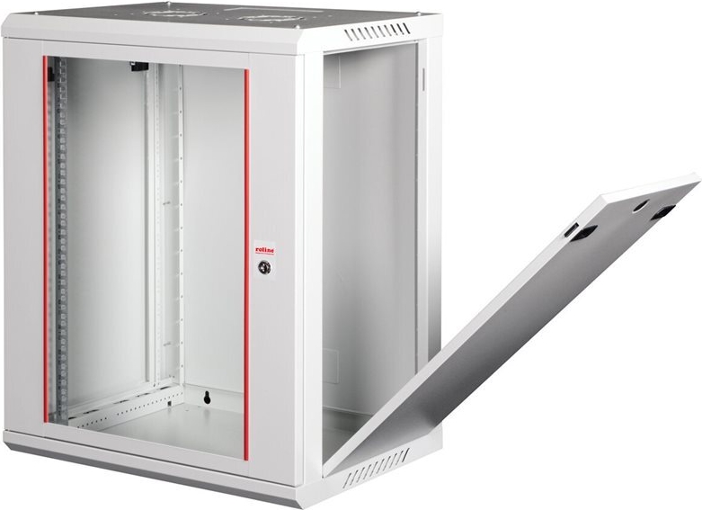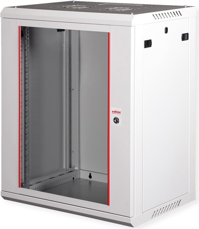 ROLINE 19 Zoll Wandgehäuse Basic Plus mit 450 mm Tiefe Die Wandgehäuse der ROLINE Basic Plus Serie wurden speziell für eine flexible Netzwerkverkabelung konzipiert. Diese Serie stellt eine ideale Balance zwischen der ROLINE PRO- und der ROLINE Basic-Serie dar. Das Bodenblech und das Dach sind mit einem ausgestanzten Kabeleinlass ausgestattet. Zusätzlich wird die Aufnahme eines Lüftermoduls durch einen ausgestanzten Bereich im Dach ermöglicht. Im Inneren ist ein Paar galvanisierte Profilschienen mit Höheneinheiten von 483 mm (19") verbaut, die zusätzlich in der Tiefe verstellbar sind. Die robusten Stahlkonstruktionen der Schränke bestehen aus einem starken Stahlblech und sind in Grau (RAL 7035) oder Schwarz (RAL 9005) pulverbeschichtet erhältlich. Die Seitenwände sind mit einem Schnellverschluss versehen und abnehmbar, was die Zugänglichkeit verbessert. Optional kann auch ein Schloss in den Seitenwänden verbaut werden. Die Wandmontage erfolgt in zwei einfachen Schritten: Zuerst wird die Rückwand an die Wand geschraubt und dann mit dem Gehäuse verbunden. Optional können Nivellierfüße oder Rollen verwendet werden, um die Schränke freistehend zu nutzen. • Traglast: 80 kg • Fronttür aus gehärtetem Glas, abschließbar • Seitenteile sind mit einem Schnellverschluss versehen und abnehmbar • Dach mit Ausstanzung für Lüftermodule • Kabelzuführung an Dach und Boden möglich • Lüftungsschlitze für passive Be- und Entlüftung • Inkl. Befestigungsmaterial • Schutzklasse: IP20 • Lieferung: montiert.