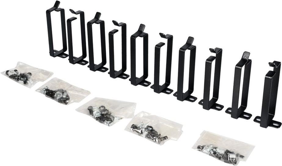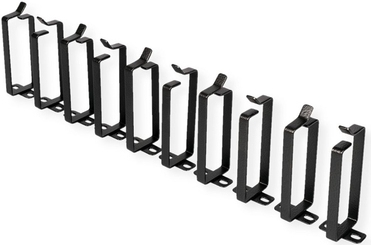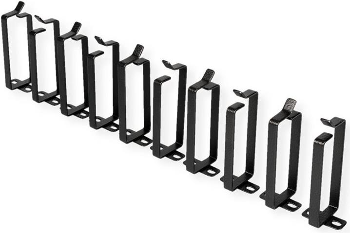 ROLINE Kabelführungsbügel 44x100mm schwarz 10 Stück Die Kabelführungsbügel bringen Ordnung in Ihren 19"-Schrank. Die Bügel bestehen aus einer Stahlblechkonstruktion, die eine optimale Lösung für eine strukturierte Verkabelung bietet. Im Lieferumfang sind 10 Kabelführungsringe und das dazugehörige Befestigungsmaterial enthalten.