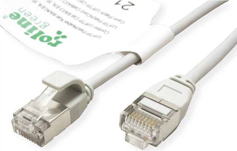 ROLINE Green - Patch-Kabel - RJ-45 (M) zu RJ-45 (M) - 2 m - U/FTP - CAT 6a - halogenfrei, geformt, ohne Haken, verseilt - Grau (21.44.3305)
