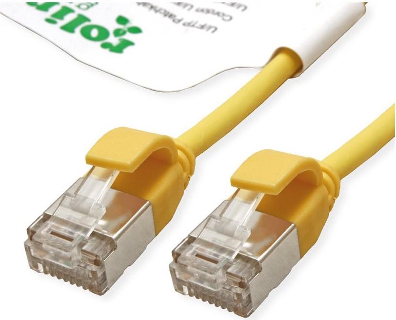 ROLINE Green - Patch-Kabel - RJ-45 (M) zu RJ-45 (M) - 15 cm - U/FTP - CAT 6a - halogenfrei, geformt, ohne Haken, verseilt - Gelb (21.44.3320)