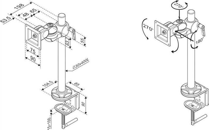 • Der LCD-Monitorarm Trägerstange kann flexibel auf den besten Blickwinkel für den Betrachter eingestellt werden