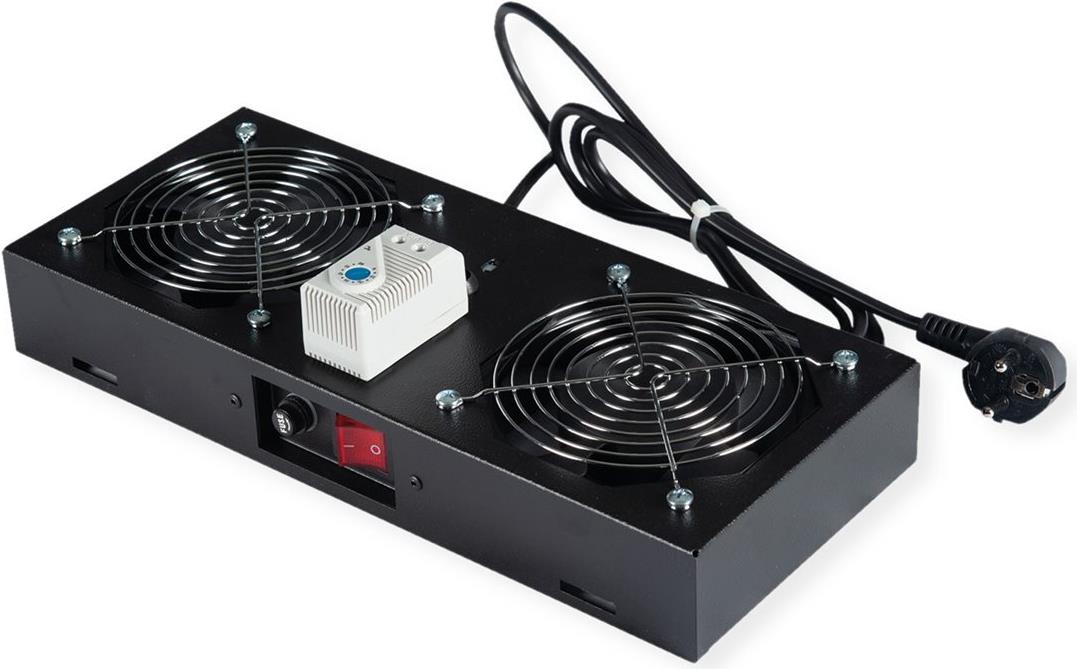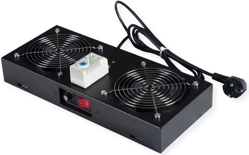 ROLINE Lüftereinheit 2 Lüfter für 19-Zoll Wandgehäuse schwarz, Thermostat Die Lüftereinheiten sind kompatibel mit allen montierten Wandgehäusen der ROLINE Pro Serie, sowie mit allen unmontierten Netzwerk- und Serverschränken (-EC). Sie lassen sich schnell und einfach im Dachmodul installieren. Ein Schalter und ein einstellbares Thermostat bieten optimale Anpassungsmöglichkeiten. Das Modell ist in den Standardfarben Grau (RAL 7035) und Schwarz (RAL 9005) erhältlich.