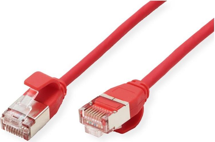 ROLINE DataCenter - Patch-Kabel - RJ-45 (M) zu RJ-45 (M) - 50 cm - 3.6 mm - U/FTP - CAT 6a - halogenfrei, geformt, ohne Haken, verseilt, 10 Gigabit Ethernet - Rot, Pantone 199C (21.15.3312)