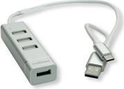 4-Port USB 2.0 Notebook Hub mit Typ A+C Anschlusskabel für Daten und Stromversorgung.