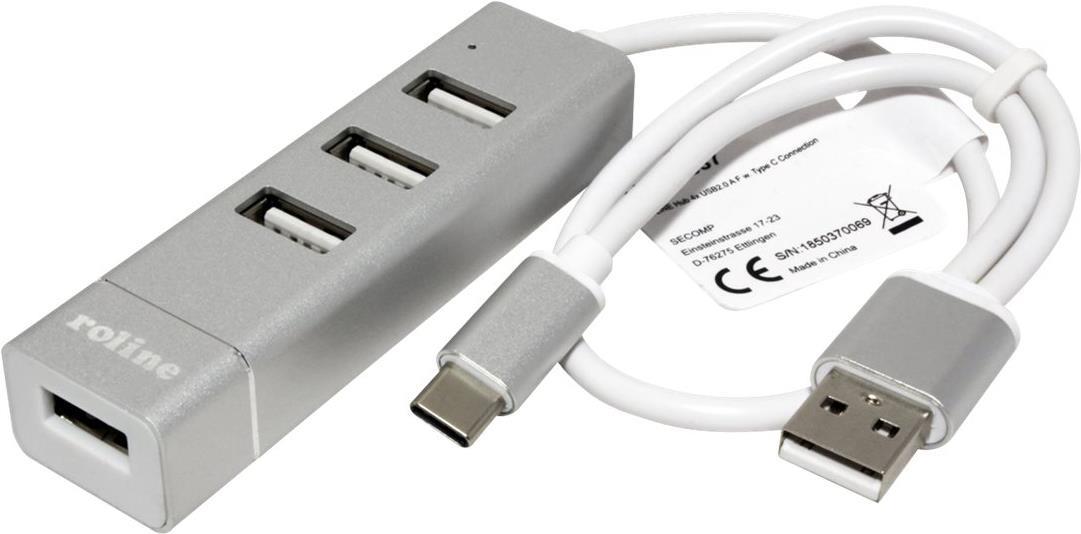 ROLINE 14.02.5037 Schnittstellen-Hub USB 2.0 480 Mbit/s Silber - Weiß (14.02.5037)