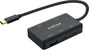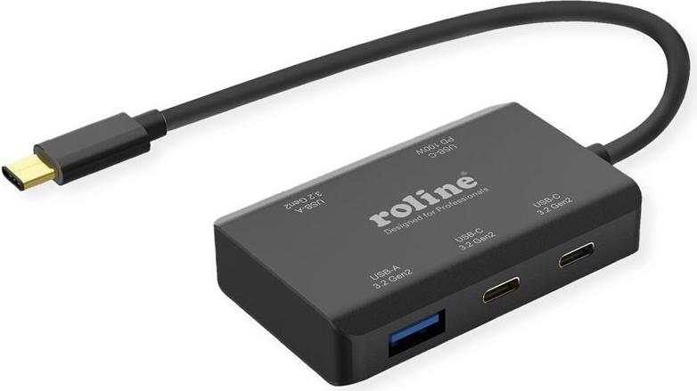 Mit diesem handlichen ROLINE USB 3.1 / USB 3.2 Gen 2 Hub mit USB-Typ-C Anschlusskabel können Sie problemlos bis zu vier USB-Geräte (2x USB A + 2x USB C) mit einer Übertragungsgeschwindigkeit von jeweils bis zu 10 Gbit/s anschließen. Außerdem wird PD (Power Delivery) mit bis zu 100W zum Aufladen Ihres Geräts unterstützt. • 4x USB 3.2 Gen 2 Ports: 2x USB Typ A und 2x USB Typ C • Übertragungsgeschwindigkeit von bis zu 10 Gbit/s, automatische Feststellung der optimalen Übertragungsrate • Unterstützt PD (Power Delivery) max. 100W (mit opt. Netzteil) • Fest angeschlossenes Kabel mit USB Typ C Stecker • Plug & play, kein zusätzlicher Treiber erforderlich • Abwärtskompatibel mit USB 3.0 / USB 3.2 Gen. 1 / USB 2.0 / USB 1.1 • Spannungsversorgung über das USB-Typ-C-Anschlusskabel.