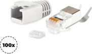 S/CONN maximum connectivity Netzwerk Modular Stecker RJ45 SET für Verlegekabel bis AWG 23, Stecker mit Zugentlastung, Einführhilfe und Tülle, grau VE 100 (72067-100GR)