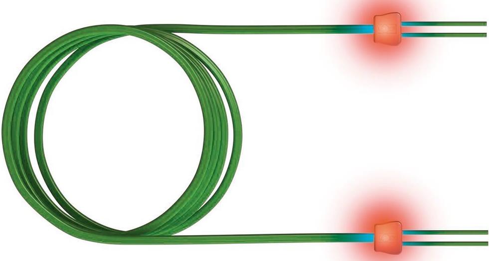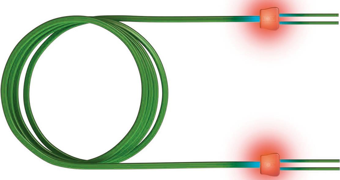 LWL-LED-Patchkabel als Verbindungs- oder Adapterkabel. Die Standardausführung der Verbindungskabel ist gekreuzt. Beim SC- / LC-Duplex ist ein nachträgliches Drehen der Stecker zueinander möglich. Das LWL-LED-Patchkabel ist besonders für den Einsatz in Büro, Industrie und Rechenzentren entwickelt worden. Durch den Kabelaufbau ist gewährleistet, dass die optischen Übertragungsparameter ein Höchstmaß an Datensicherheit bieten. Das patentierte Verfahren zur einfachen Zuordnung der Kabelenden zueinander erhöht die Betriebssicherheit erheblich, ein unbeabsichtigtes Ziehen der Patchleitungen wird nahezu ausgeschlossen. Nach der Kontaktierung einer Patchkabelseite mit dem Detektor werden beide Kabelenden elektrisch angeregt und leuchten. Das LWL-LED-Patchkabel kann mit allen gängigen LWLSteckern bestellt werden.