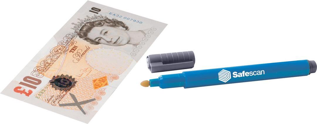Haben Sie schon mal einen Stift gesehen, mit dem Sie direkt kontrollieren können, ob ein Geldschein echt ist? Bei der Arbeit oder unterwegs? Der Safescan 30 ist der ideale tragbare Partner zur Falschgeldkontrolle. Der auffällig gefärbte Prüfstift ist das perfekte Mittel für eine schnelle und einfache Kontrolle aller Währungen.