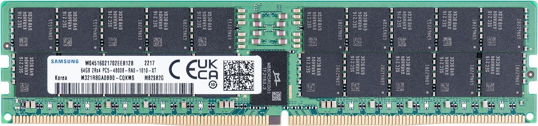 Samsung - DDR5 - Modul - 64GB - DIMM 288-PIN - 4800 MHz / PC5-38400 - CL40 registriert - ECC (M321R8GA0BB0-CQK)