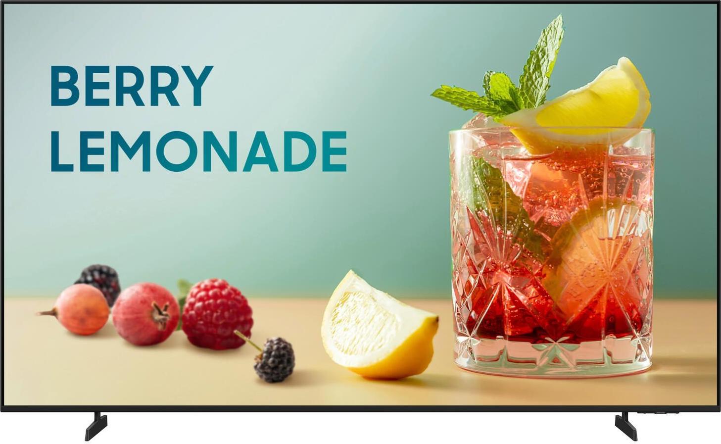 Das Samsung BE43FX-H-Display verfügt über eine 43-Zoll-4K-UHD-Auflösung, die Bilder mit einer Helligkeit von 300 cd/m2 und einem Kontrastverhältnis von 4700:1 liefert. Das schlanke, rahmenlose Design sorgt dafür, dass der Fokus auf den lebendigen Bildern bleibt, was sich ideal für gewerbliche Räume und Digital Signage-Umgebungen eignet. Mit HDR10+-Unterstützung und verbesserter Farbgenauigkeit bietet dieses Display ein beeindruckendes Seherlebnis für Präsentationen und Unterhaltung. Dank der Motion Xcelerator-Technologie wird die Bewegungsklarheit verbessert, sodass es sich für schnelllebige Inhalte eignet. Der Tizen Business Manager und die Samsung Business TV-App bieten Digital Signage-Funktionen, die eine einfache Verwaltung und Planung von Inhalten ermöglichen.