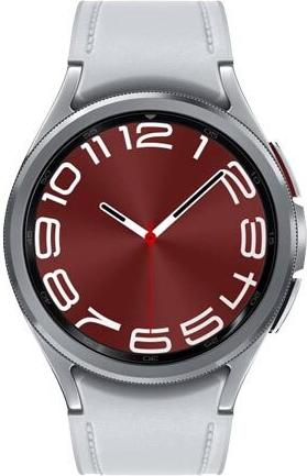 Samsung Galaxy Watch6 Classic - 43 mm - intelligente Uhr mit Band - Hybrid-Eco-Leder - Silber - Bandgröße: S/M - Anzeige 3,33 cm (1.3") - 16GB - NFC, Wi-Fi, Bluetooth - 52 g - Silber - EU-Version (SM-R950NZSAEUE)